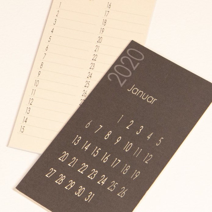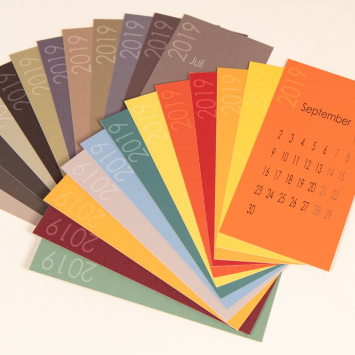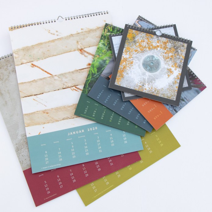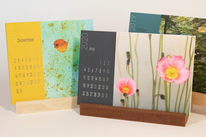 Sie wählen individuell 12 Postkarten, das separate Kalendarium ist 2-seitig bedruckt (Varianten: bunt/gedeckt oder Monatsübersicht/beschriftbar). Der Ständer ist in verschiedenen Holzarten verfügbar. Tischkalender werden in den Postkartenformaten „rechteckig“ und „quadratisch“ angeboten.